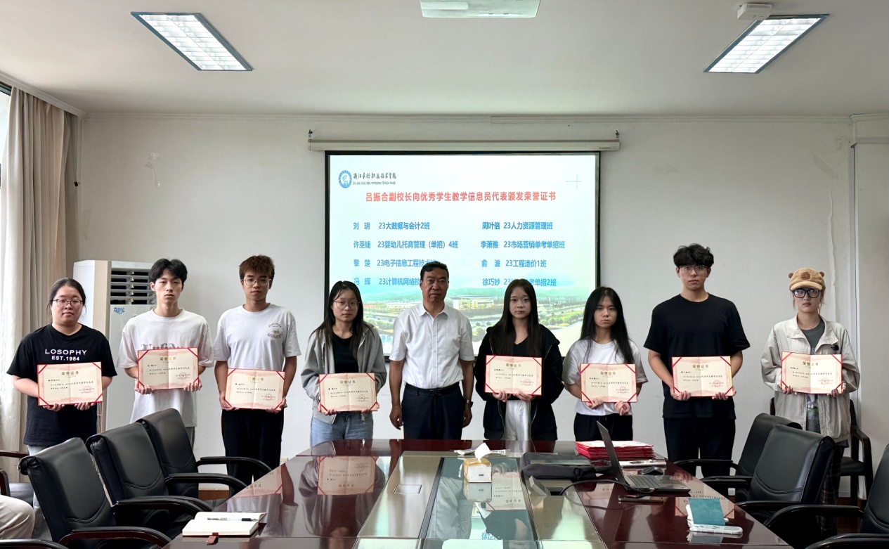 吕振合向优秀学生教学信息员代表颁发了荣誉证书,为新聘任的8名校级学生教学信息员颁发了聘书。