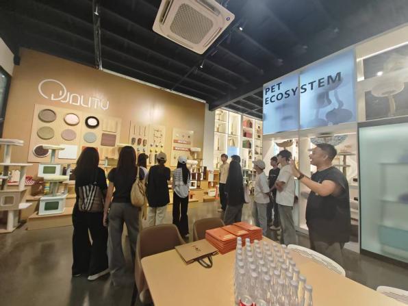 浙江品至家具有限公司是一家集生产与销售为一体的工贸家具企业,长期为沃尔玛等海外商超供应宠物家具。公司聂总对师生一行的到来高度重视并全程接待讲解。聂总语言风趣、讲解生动,现场气氛活跃,笑声不断。在参观过程中,他系统介绍了宠物家具的生产流程、市场前景及跨境电商运营模式,并结合实际案例,分享了行业经验与人才需求。他特别强调,扎实的专业技能是企业发展的核心驱动力,并鼓励同学们珍惜在校时光,积极参与实践,提升综合能力。