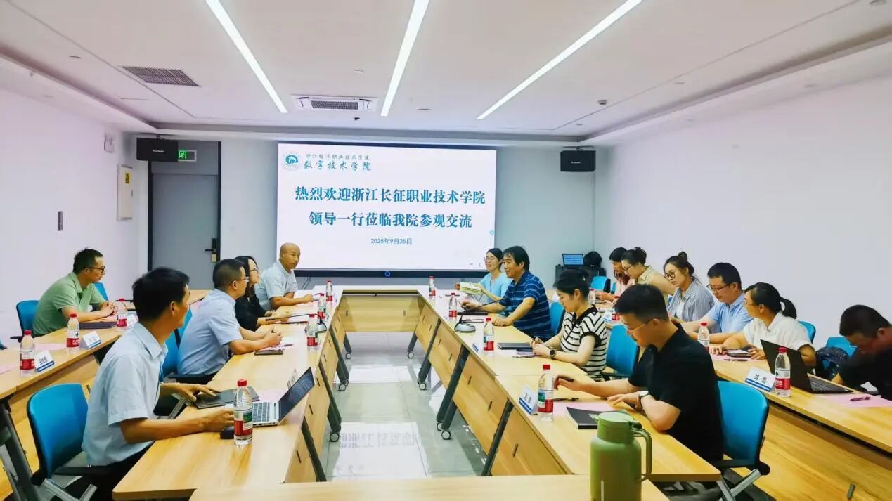 为深入学习借鉴兄弟院校的先进办学经验,进一步推动学院专业建设、产教融合与党建工作的提质增效,9月25日下午,计算机与信息技术学院院长梅灿华率领专业教学团队及党建工作骨干一行十人,专程前往浙江经济职业技术学院数字技术学院进行专题交流学习。此次活动受到了浙江经济职业技术学院数字技术学院院长楼建列、党总支书记肖紫嫣及相关专业负责人的热情接待,双方就多领域合作展开了深入而细致的研讨。