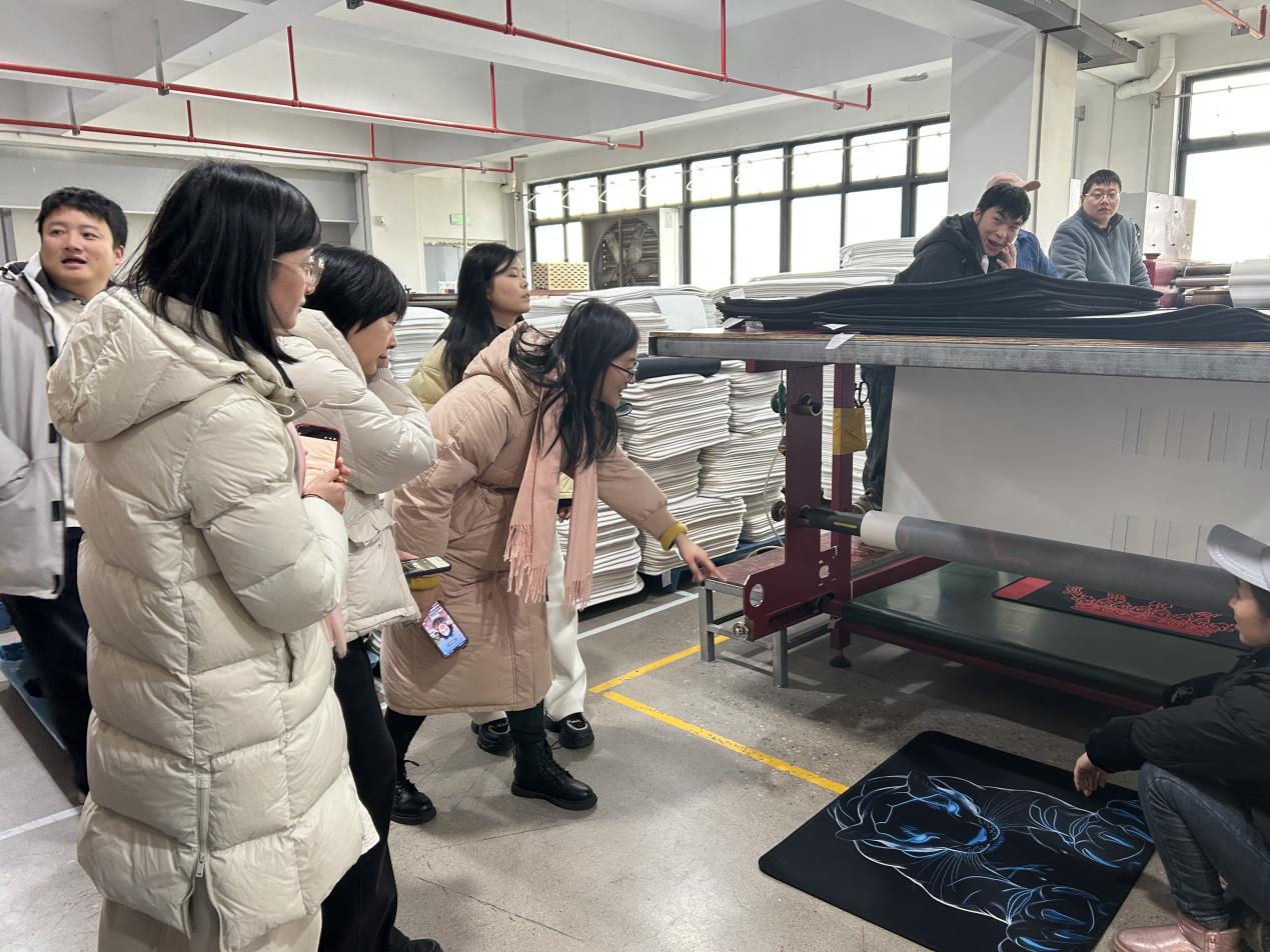 下午,商贸学院教师代表一行深入企业参观POD生产车间,企业负责人陈璐带领教师实地观摩从设计稿到成品的全流程生产环节,切身感受“小批量、个性化、快反应”的新型制造模式。企业表示,急需具备数字素养、审美能力和商业思维的学生加入,共同推动产业创新发展。
