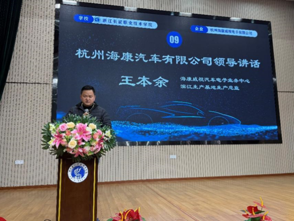 杭州海康威视滨江生产基地生产总监王本余介绍了海康威视的发展概况、企业文化以及对高素质技能人才的迫切需求,公司高度重视与长征职业技术学院的合作,“星火学徒班”的设立是公司人才战略与学校育人目标深度融合的体现,此次设立星火班,公司将为学员提供系统的岗位培训、企业导师指导和宝贵的实习实践机会,期待同学们能学有所成,未来在海康威视的舞台上发光发热。